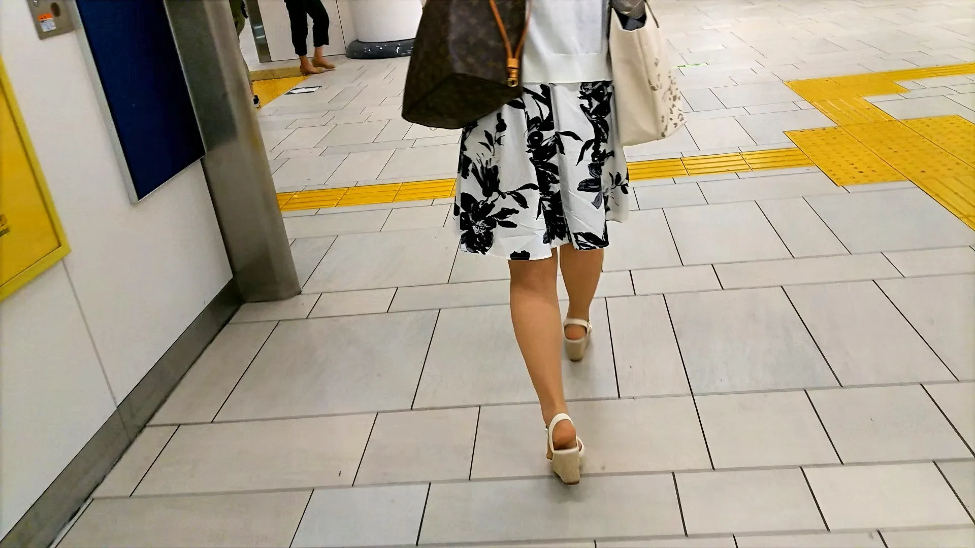 いい感じのスカート、いい感じのふとももとお尻に薄い水色パンツが食い込みハミ出た尻肉がいい感じ、そして結構無防備?と思っていたのですが、2本目のエスカの途中でいきなり振り向き。カメラ目線来てます。
