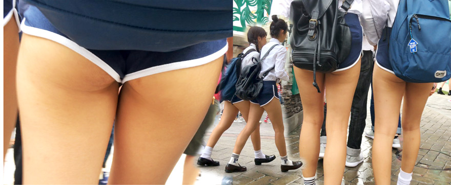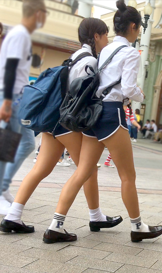 【4K街撮り】制服風はみ尻美形女子2人組☆☆エロイ恰好で街を練り歩きPart1