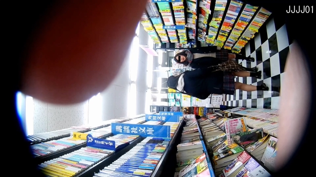 【フルHD画質靴カメ】書店とレジで染みパンJkを逆さ撮り