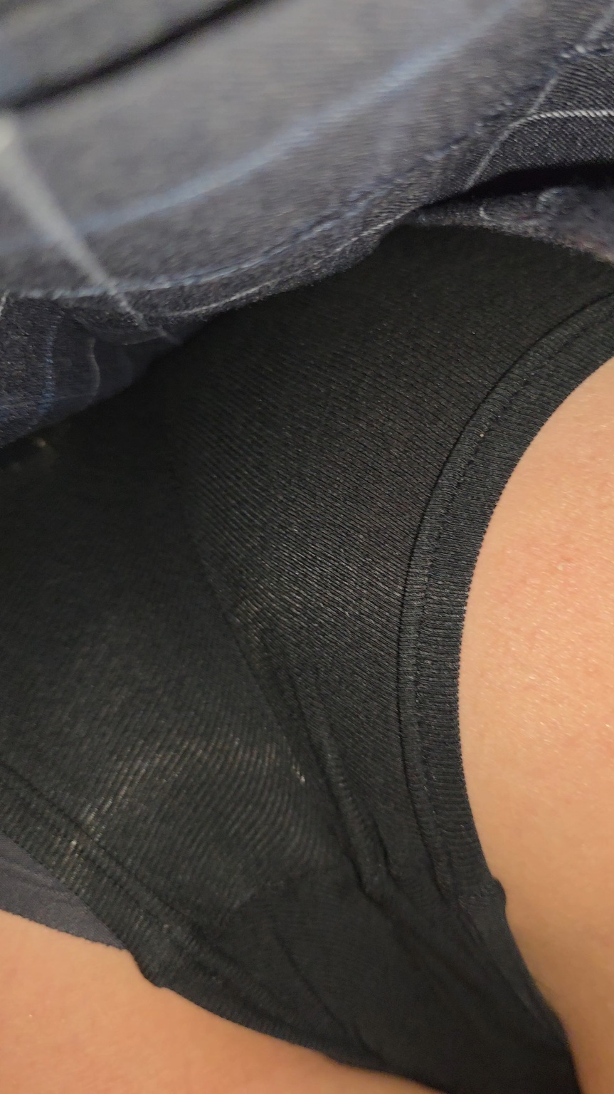 厚めのタイツでパンティは拝めませんでしたが、棚下、階段