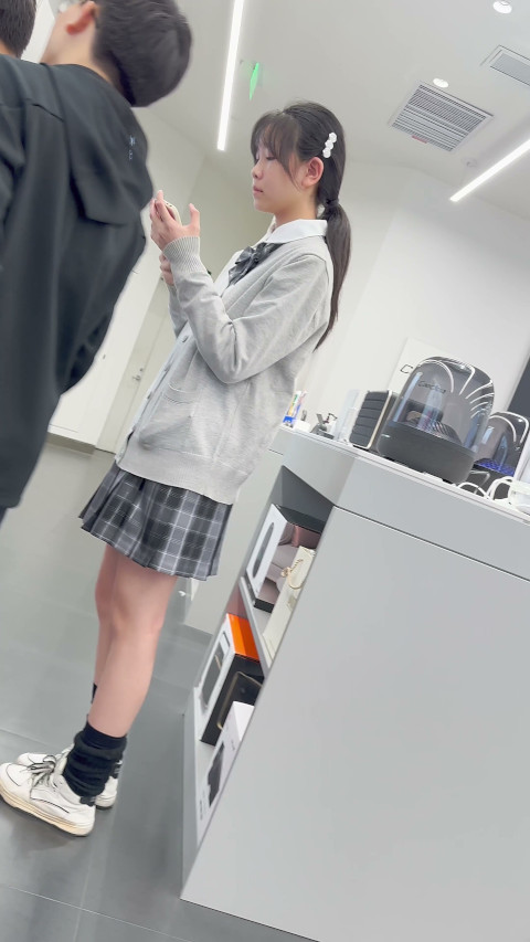 「盗撮されてるよ」と注意するような仕草でモデルの子