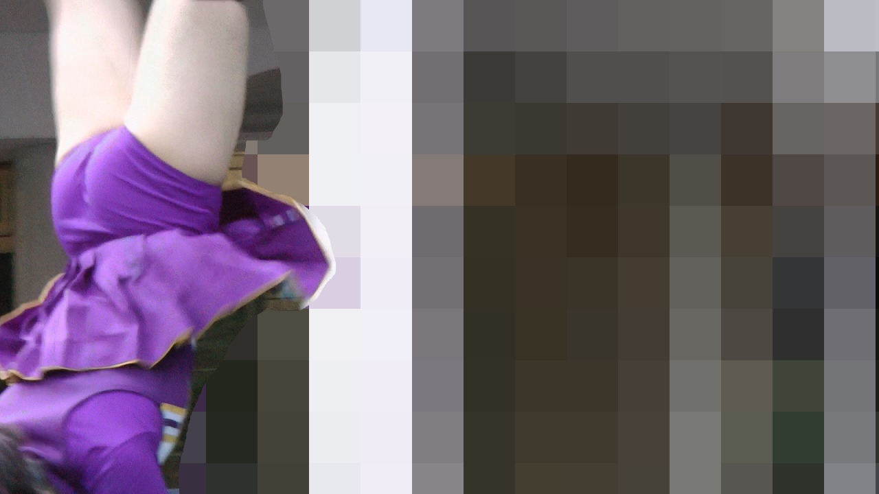 アップになった紫のアンスコには何やらシミのような跡が見えますが、今日は女の子の日だったのでしょうか?