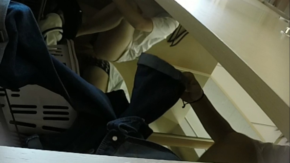 彼女は紺色のミニスカートを穿いていました。少し制服コスプレ系の超ミニスカートで、すぐにパンツが撮れそうな感じに見えました。そこでカメラを準備してチャンスをうかがいます。