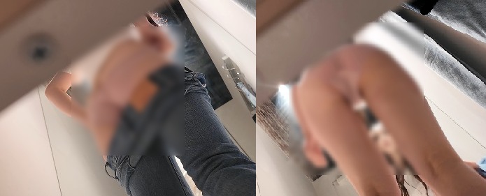 ちなみに僕が着るなら5番ですかね(* ´∀`)<クソデカサイズ ここでプレゼントの為に買いに来たと”買う理由”と”プレゼントするから間違いたくないんですよ”と意思伝達。 前に見に来て気になってる服がある、サイズもわかってる、そして買いにきた目的もかなりリアルなはず。 皆さんがアパレル店員さんだったら、こんな僕みたいなお客をどう思いますでしょうか? そうです、真実はいつも一つです。 不審者案件で即110番ですね。 違う違う。 それは僕はどういう人物か知ってることを前提としている話で、普通の店員さんなら良いお客さんだと思うはず です。 そして女神様であり、猫なで声娘も思ってくれてたはず。 ここで試着のワードを出して潜在意識に刷り込みます。 「買う人ってだいたい試着しますよね?」 その後も無駄に悩んだふり。 いつもよりちょっと長く悩むふり。 そうすると「着てみますか?逆に?」と茶目っ気ある大人のジョークを言ってくれます(* ´∀`) あー〜〜〜〜〜〜もうまじかわいい。かわいいけどそうじゃない笑 ここで勇気を振り絞らねばなりません。 可愛い店員は世の中に沢山いるものの、強制的にパンツを見せてもらうにはズボン系はどうしても着替えさせな いといけない。 その難関をどう突破するか。 一つ目の難関として、試着室はドア閉める個室タイプではないか。 試着室の個室はハイブランドに多いんですが、個室だと完全にドアが閉まってしまうので差し込めないんです。 そしてこの店舗はカーテンではなくどちらかと言えば簡易なドアタイプ。 隙間から簡単にカメラ置いたら見えるタイプです。 1Fは完全個室だったのですが、こちらは違う形です。 僕は一度入った店舗では店員さんの顔と試着室の場所を必ず覚える癖があるので、癖が幸いしてます。 それにしてもこのタイプの試着室は珍しい。 大体どこもカーテンばかりなので。 セキュリティ的にもダイブガバガバです。だって防犯カメラがない笑 防犯カメラをつけると上から覗けてしまうからかも? ってことで今回はほんとマジで本気出しました。 本気出すって言っても悩んだふりして「着てもらったりできませんか?」って言うだけなんですけど、それも過去 イチ心を込めて伝えました。 経験上、ちゃんとある程度コミュニケーション取った後じゃないと断られる確率も格段に上がるので、それっぽ い会話を入念にして。 普通の店員さんはこんな提案されませんし、女物の店ですから買う人が直接来店しますからね。 大阪の天王寺やイオンみたいに、盗撮の噂が広がったらこの手法は使えなくなるんでしょうが、過去にタイーホ された時も同じ現場には二度と来ないと思って、どの現場も迷惑関係なく攻めましたから。 そして運命の瞬間。 着替えさせ打率2割のおいらよ。 今回着替えてもらえれば今後打てなくなってもいい、なんなら腕がちぎれてもいい。 神よ女神よビリケンさんよお願いします。 そして第一声!! 「き、き、き、」 なんて言葉が出ないなんて言いません! Hero「お、お姉さん、き、着てもらったりできないですかね?(ニチャァ)」 こいこいこいこい恋。ど真ん中じゃなくてもいい。デッドボールでもいい。とにかく振るから!!! ・・・・・・ 女神「私ですか?全然大丈夫ですよぉ」 オルァァァラァァァァ!! 血湧き肉躍る。 躍動しろ俺のラグジュアリー。 そして日本中に見せろ、ジーパンの下に隠してるランジェリー。 マジで宝くじ当たった気分。 僕が逆に動揺してしまいまして、真剣に探してるふりを無駄に続けてお姉さんのサイズとか聞いてます(* ´∀`)< 嬉しすぎて そしてここからが本番。 この際どんな色でもいい黒パンでもいい。 生理じゃなければいい・・・。 試着室の前までついていって、試着室内の前にいることを気づかれないようにしつつ、尚且つ、自分の影が映らな いように注意していざ差し込み。 ・・・ ・・・!!!! 皆さんご存じですか。 ロンスカの下は生率が高いとか言う時代は既に終わりを告げたんですよ。 この世はロンスカでも中にスパッツとか履き放題の乱世。 時代はジーパンの下は生率が高い!!!これです!!! ってかもう100%!!!! きました薄目のスケベ女ピンクパンティ。 試着室の下があまりにガバガバすぎてガッツリと差し込むと目立つので手前気味に差し込んでますが、今回は丁 度ジーパンを脱ぐところから始まります。 しかも横向いてたので変に差し込まなくて良かったです。 横からにゅっと”何か”が出てきたら見られる可能性があったので。 そしてジーパンを脱ぐ時に上着から下ブラが見えます(* ´∀`) パンティの色とちゃんと合わせててえっち。。 しかもパンティの後ろが透けてて、お尻の割れ目が見えます。 っていうかズボン脱ぐ時にパンツまで少し下がってお尻の割れ目が少し見えてます。 プリプリのドスケベエッチ女です。 下着が下がってるのが自分でわかったのかすぐに直すんですが、貴重なシーンありがとうございます(* ´∀`) 一瞬こちら振り向かれ