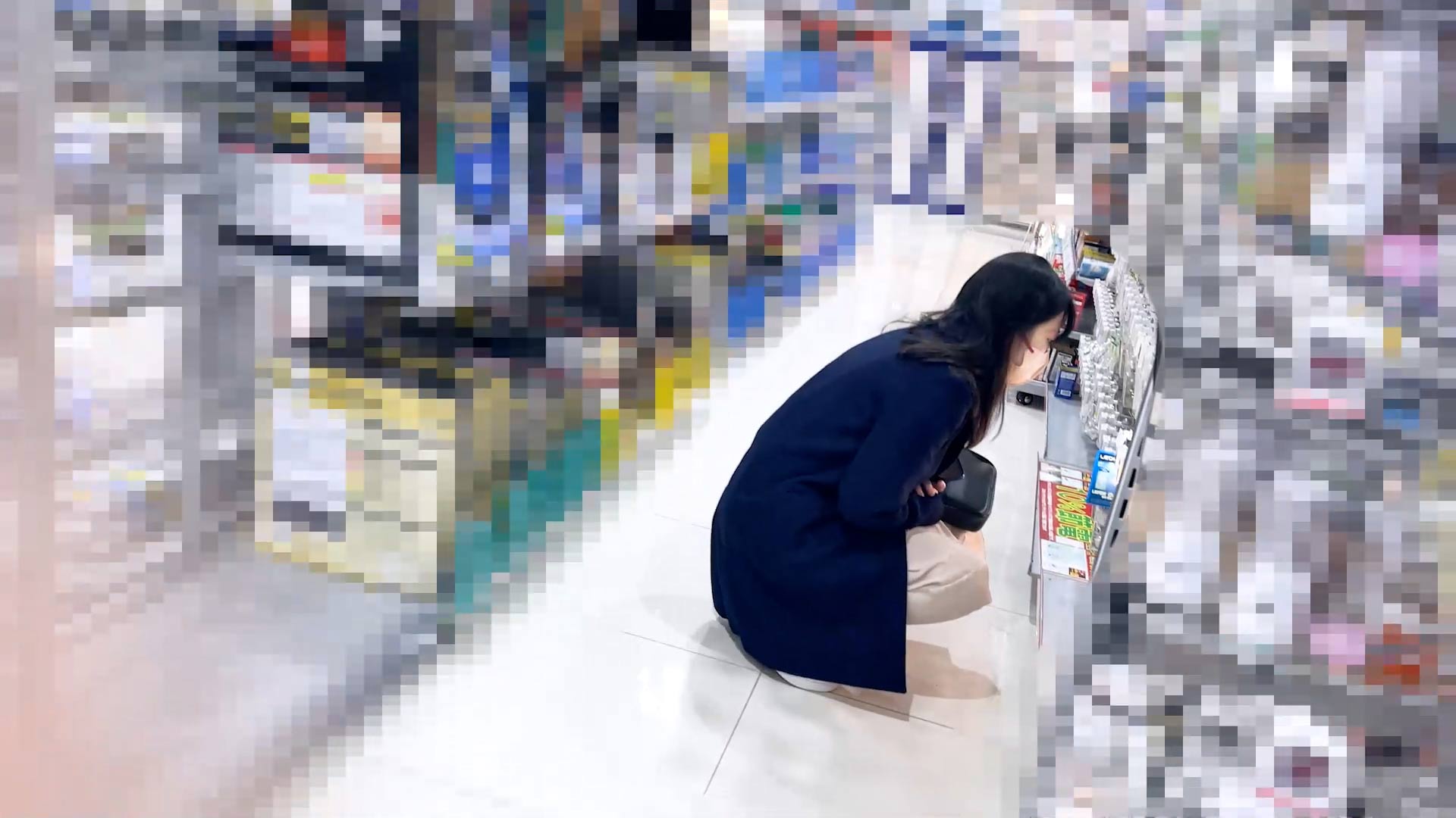 「袋まとめてもらえますか?」でラストしゃがみ狙い→マン肉ぷっくり食い込み激写成功!