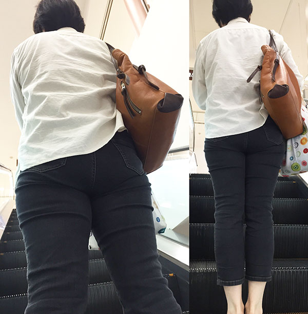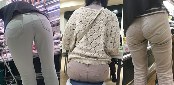 ピタピタにお尻に張り付く様が何ともエロくすれ違い様に何度も撮ってやりました。