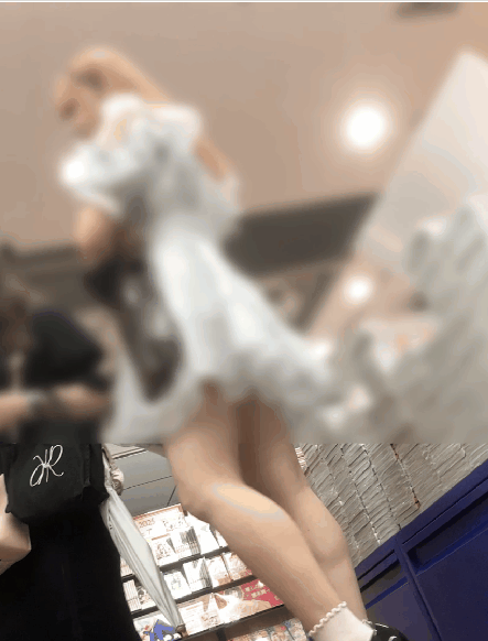 モデルを使い近づいてスカート内を撮影する設定で動画を